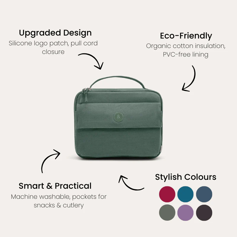 1 x Insulated Lunch Bag made from Organic Cotton in our Eucalyptus, Charcoal, Sea Glass, Lavender, River, Mulberry or Rose colourway