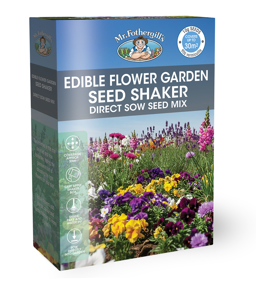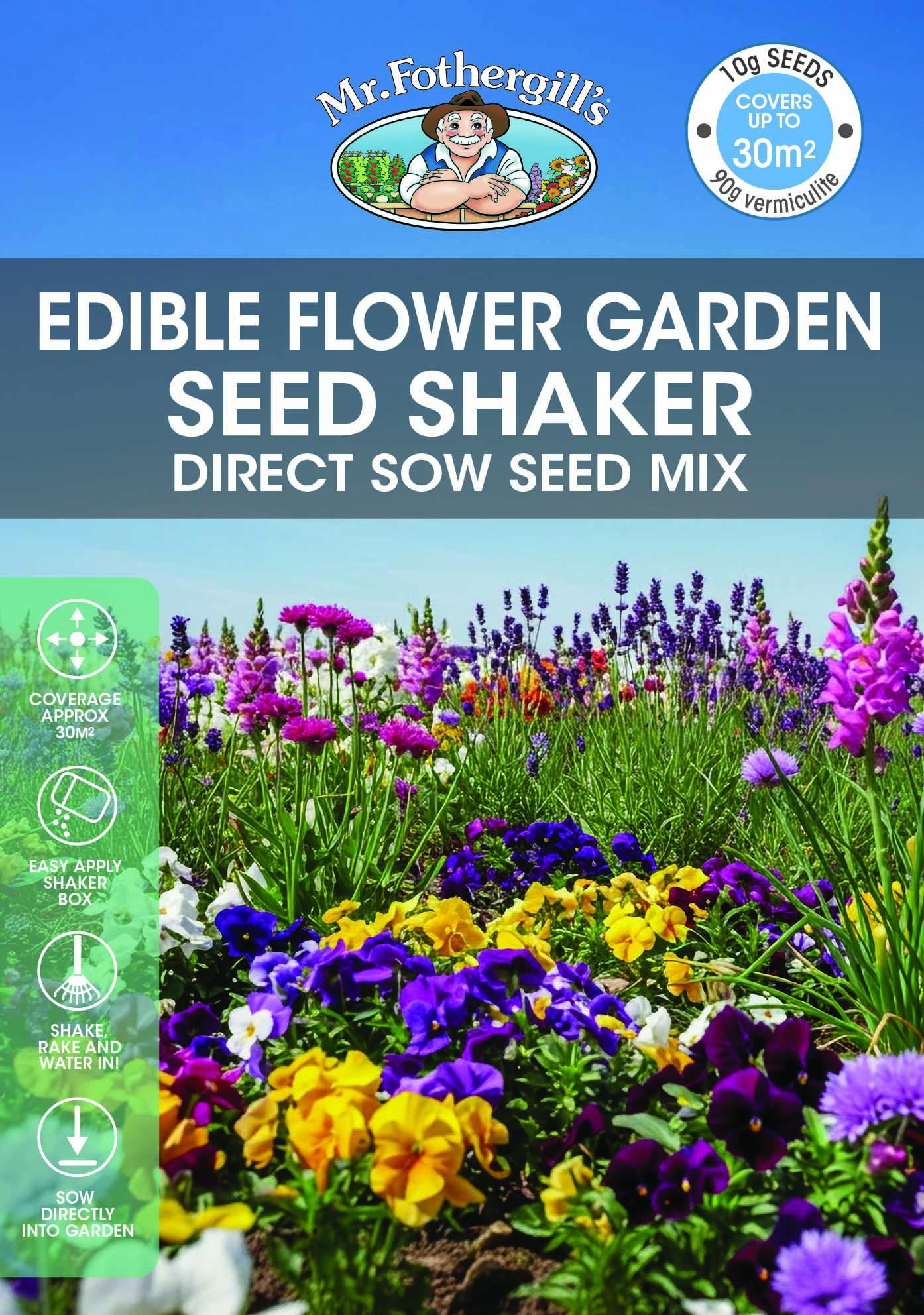 This Edible Flower Garden Seed Shaker contains 100g of Shake & Rake mix (10g seed and 90g vermiculite), enough to cover a 30m² area. The seed mix contains vermiculite, a natural mineral that ensures even seed distribution, maintains moisture levels, and supports optimal germination.