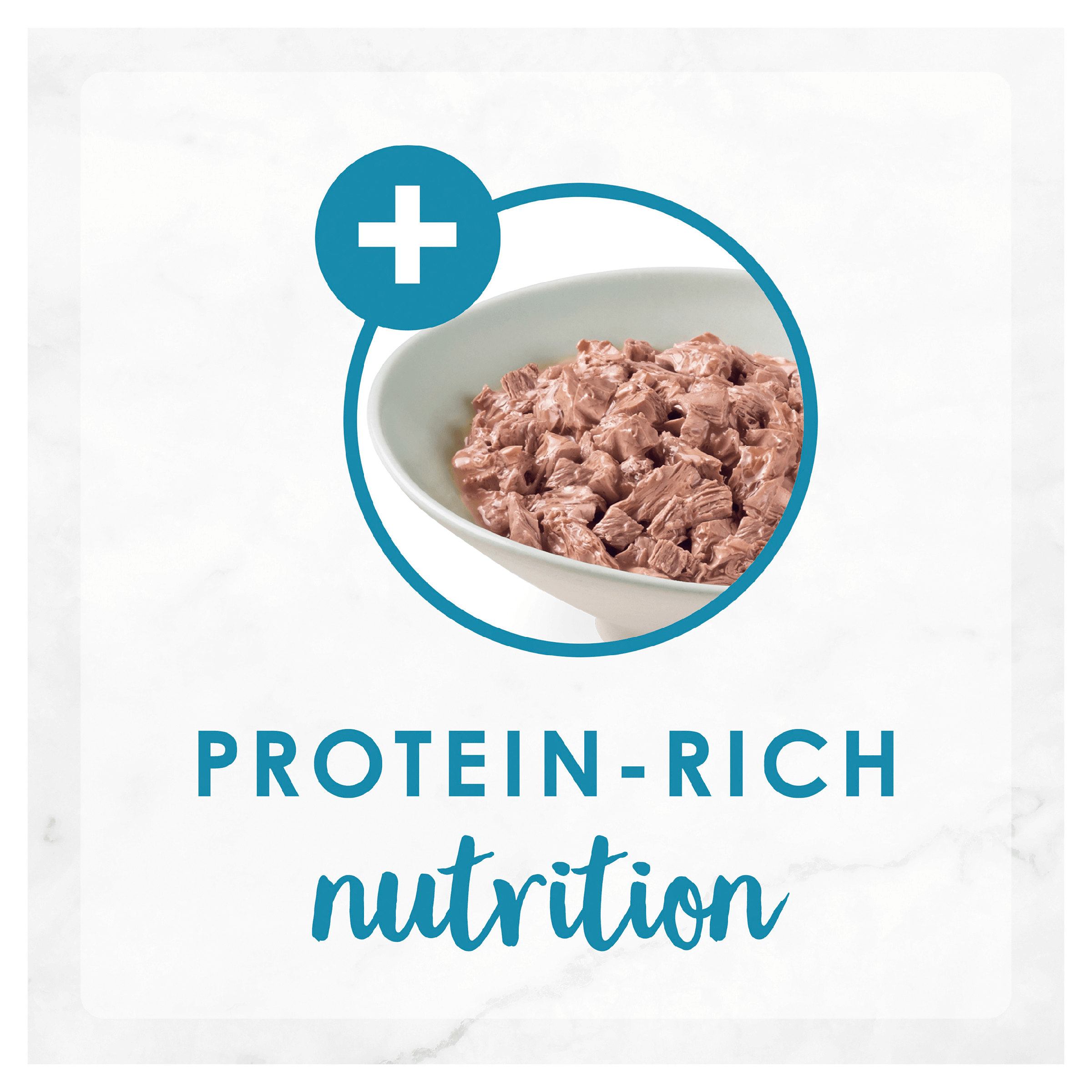 Each recipe comes in an easy-to-open and easy-to-serve 85g can that makes mealtime simple and hassle free. Serve alone or mix with dry food for a delectable texture, and a great way to add moisture to your cat’s diet. If your cat craves a variety of flavour combinations, try some of the other recipes within our range to keep her excited.