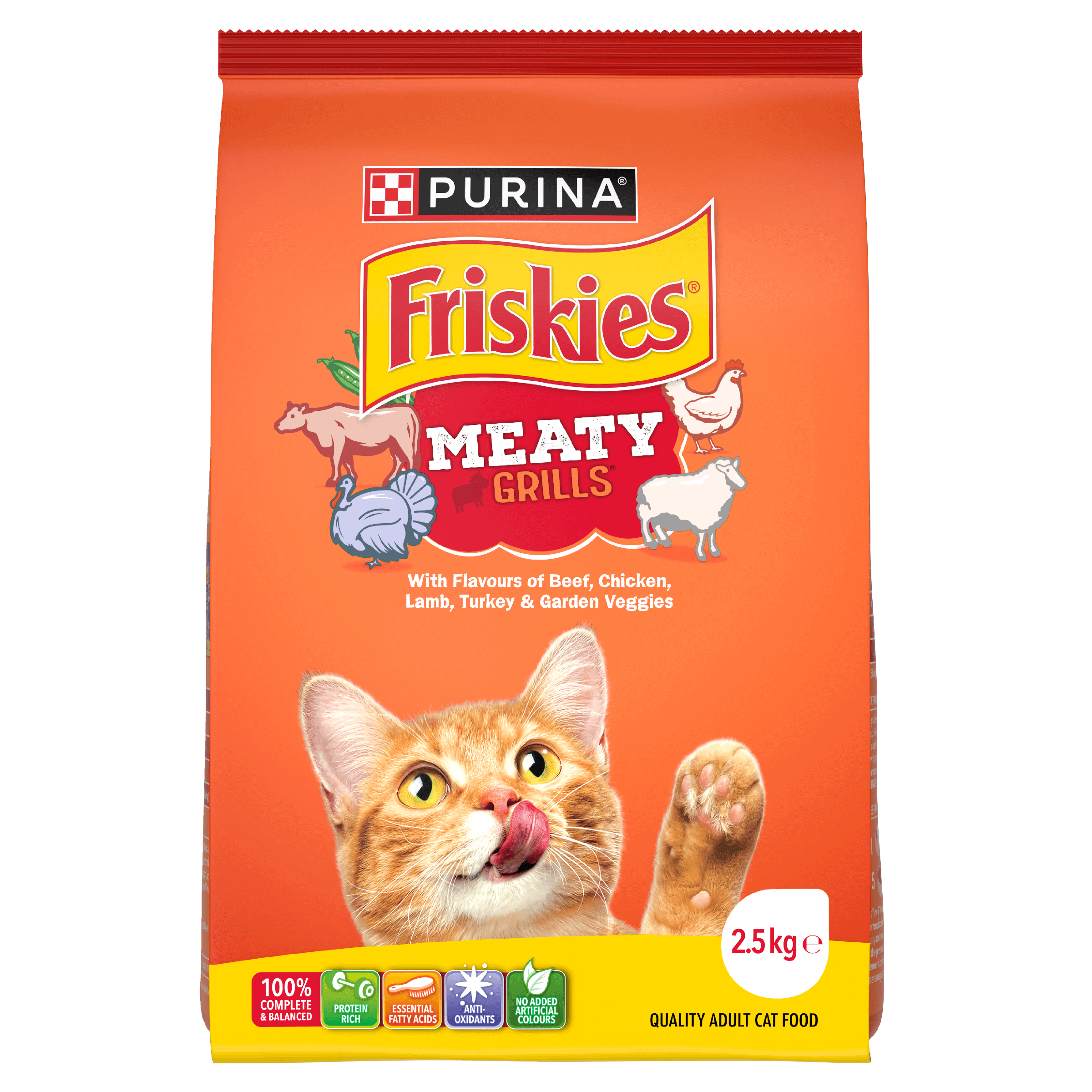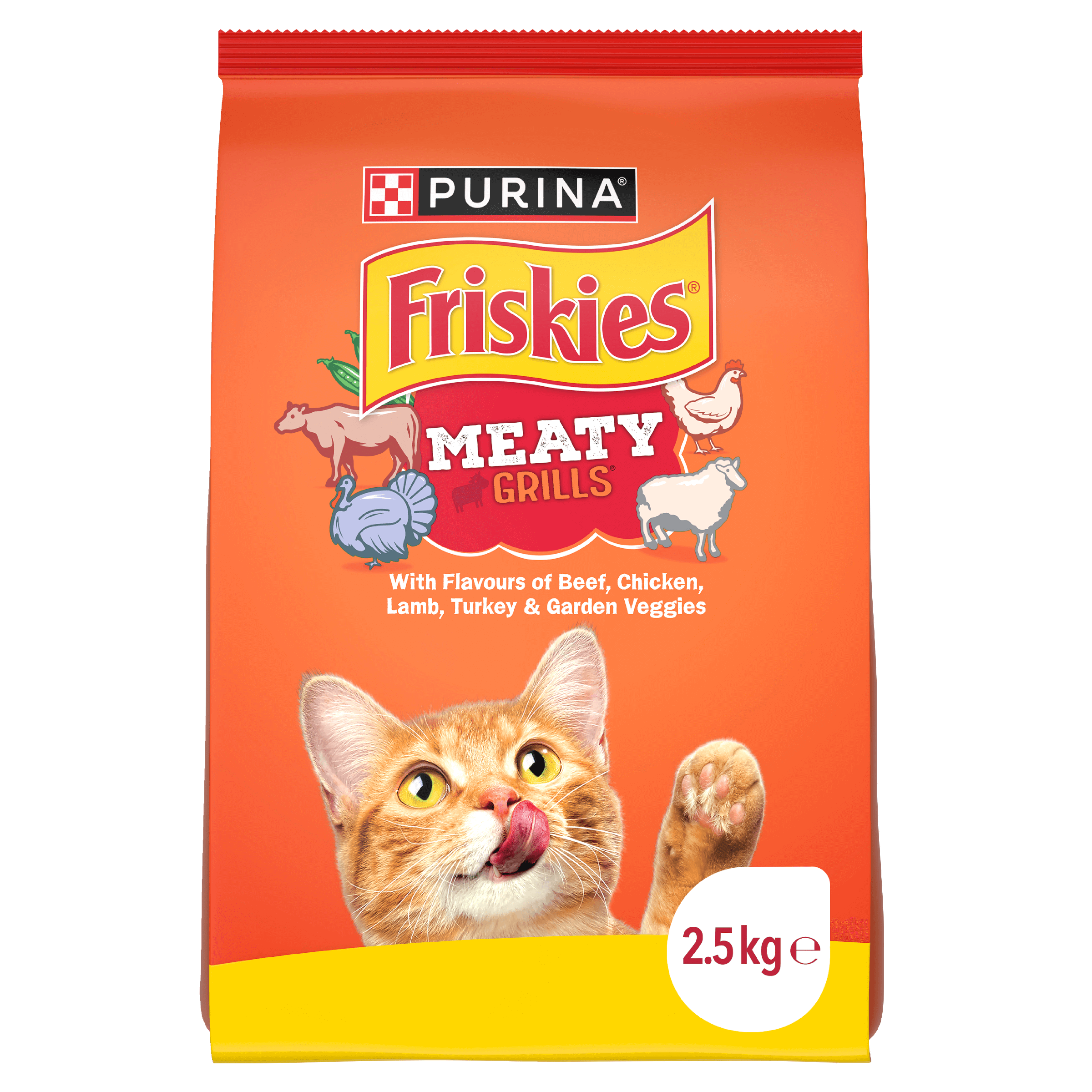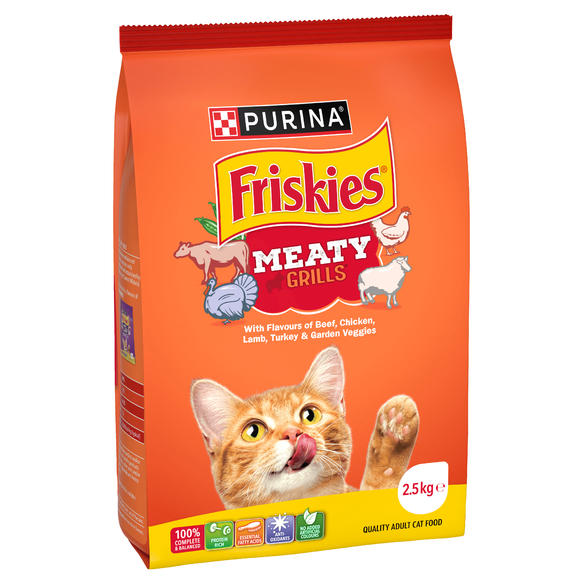 FRISKIES Meaty Grills® serves up grillicious morsels of flavour including beef, chicken, lamb, turkey and a touch of garden veggies.