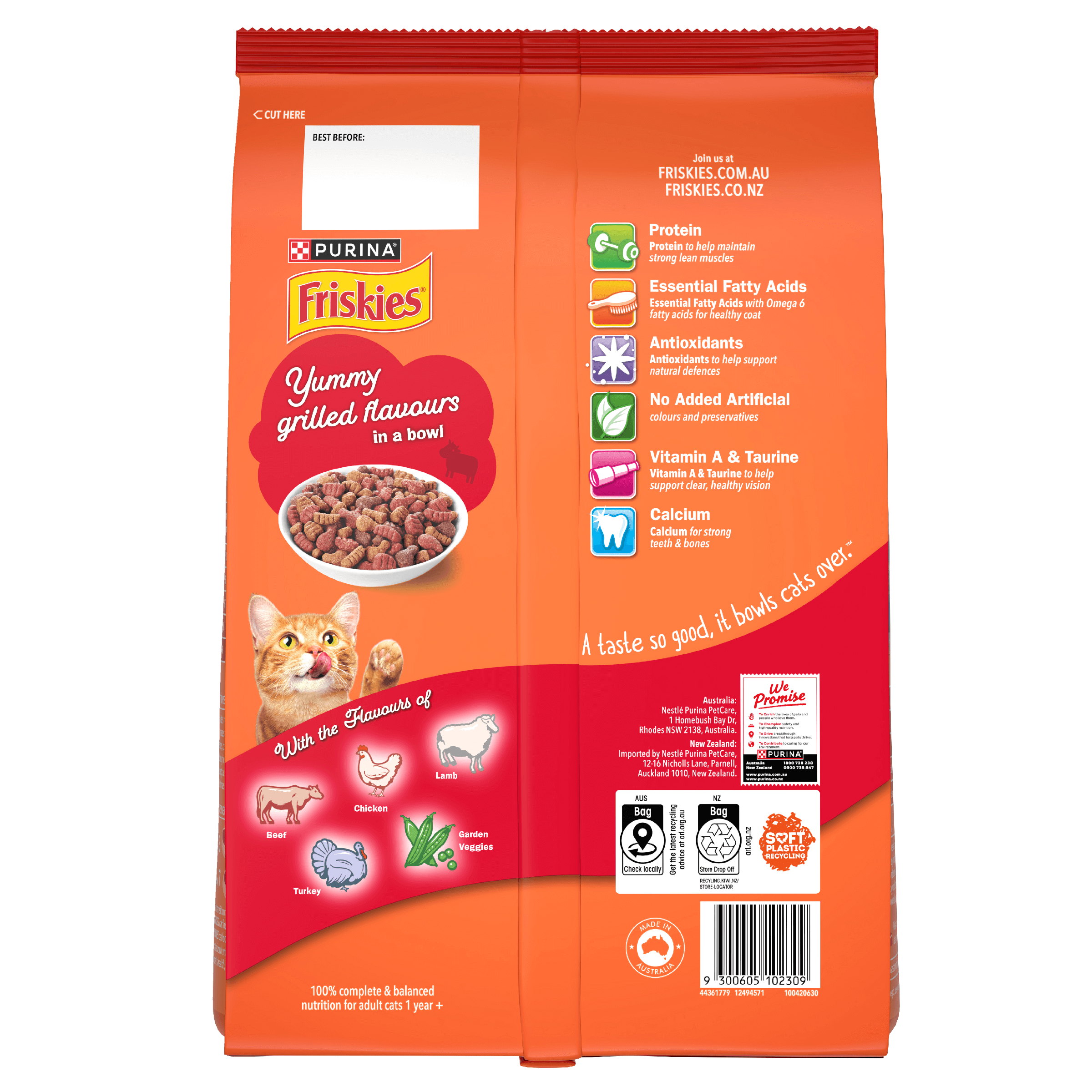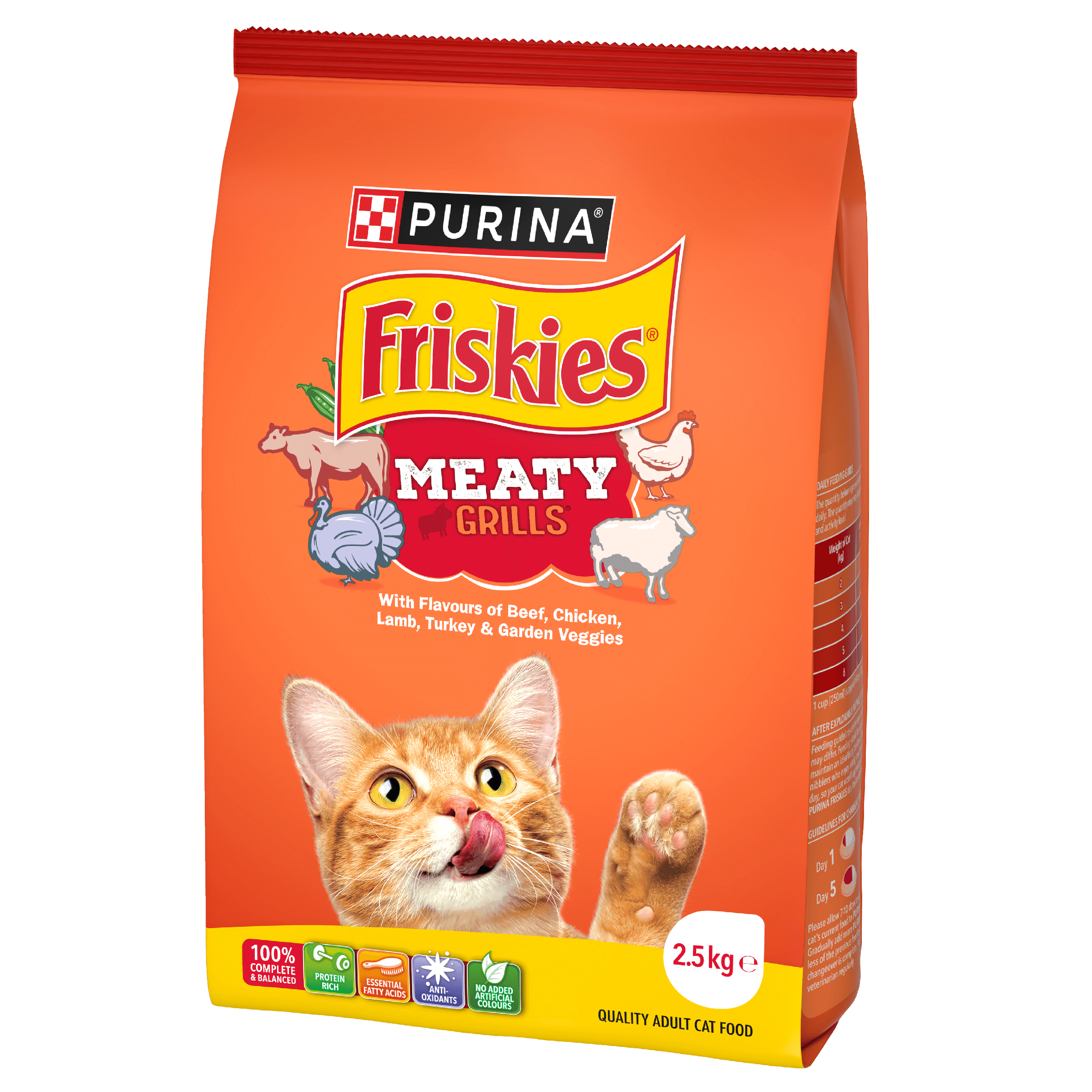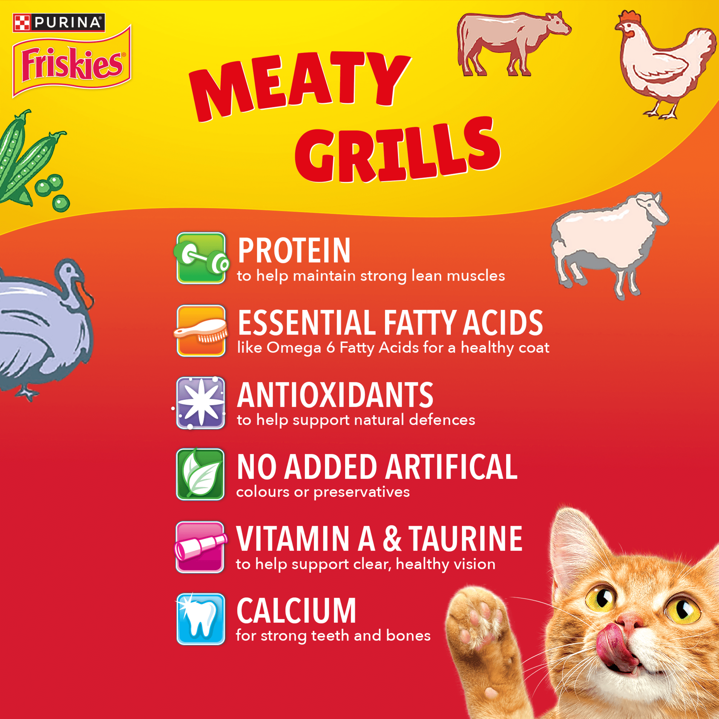 FRISKIES Meaty Grills® serves up grillicious morsels of flavour including beef, chicken, lamb, turkey and a touch of garden veggies.