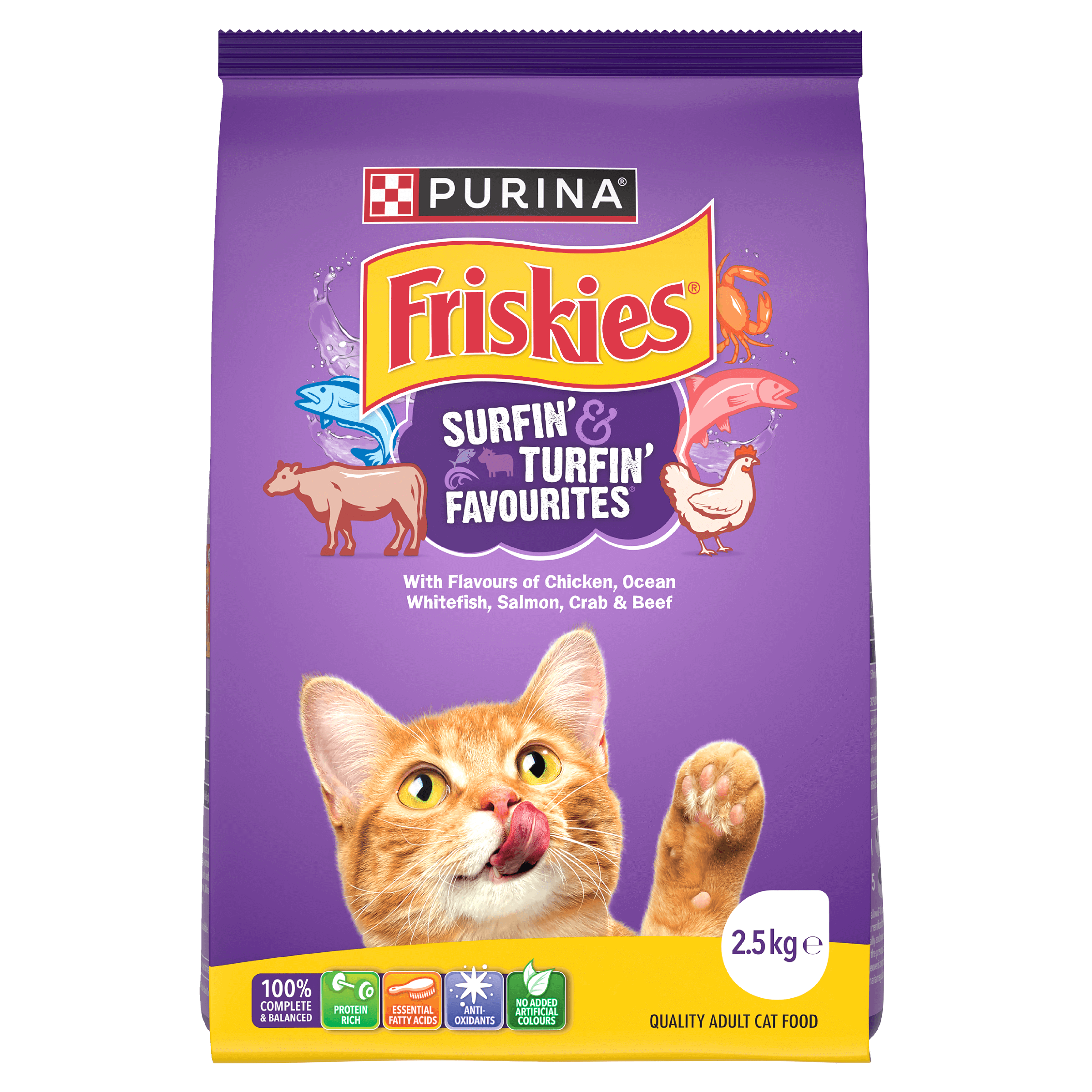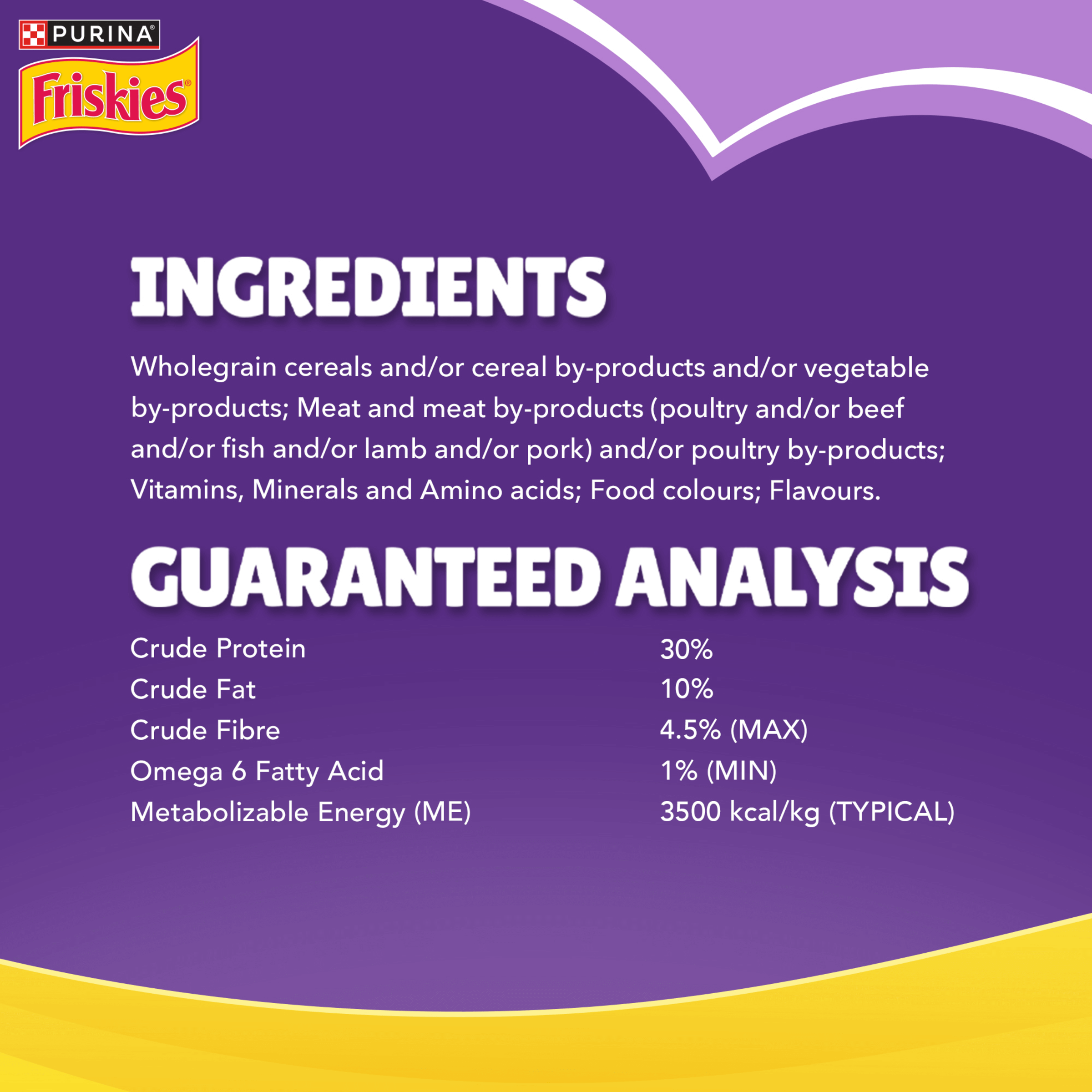 FRISKIES dry cat food is 100% complete and balanced providing all the nutritional goodness your cat needs to live life to the fullest.