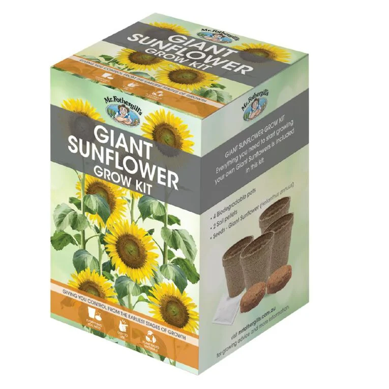 Grow your own giant sunflower garden at home with this all-in-one grow kit! These giant sunflowers can grow over 2 metres tall with blooms the size of dinner plates. You can attract birds into your garden by leaving the wilted flowers on the stem to develop seeds for the birds to feed on.