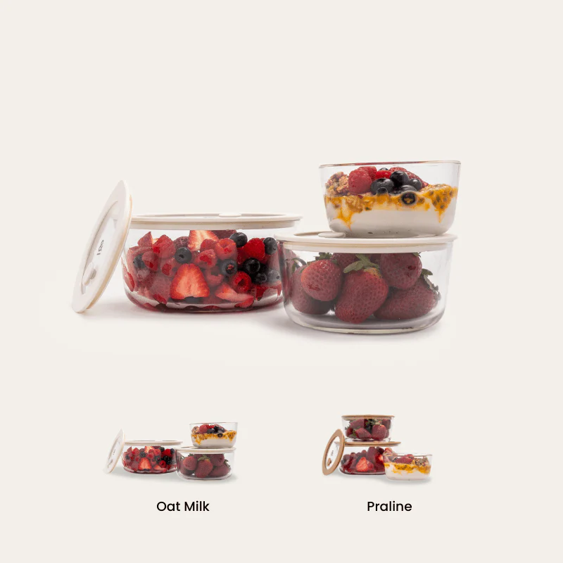 Glass Food Containers | Oat Milk Round Mixed 3pk