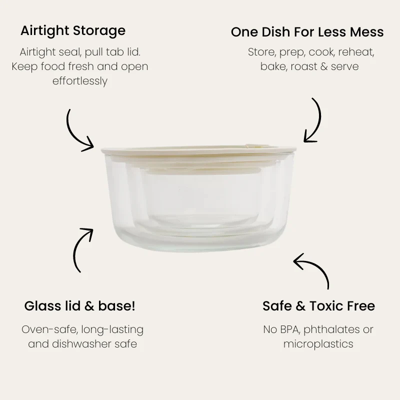 Plastic food containers have been shown to leach chemicals into waterways, your surroundings and your food. For a healthier, eco-friendly alternative, glass allows you to create a low-tox environment in your kitchen, fridge and pantry.