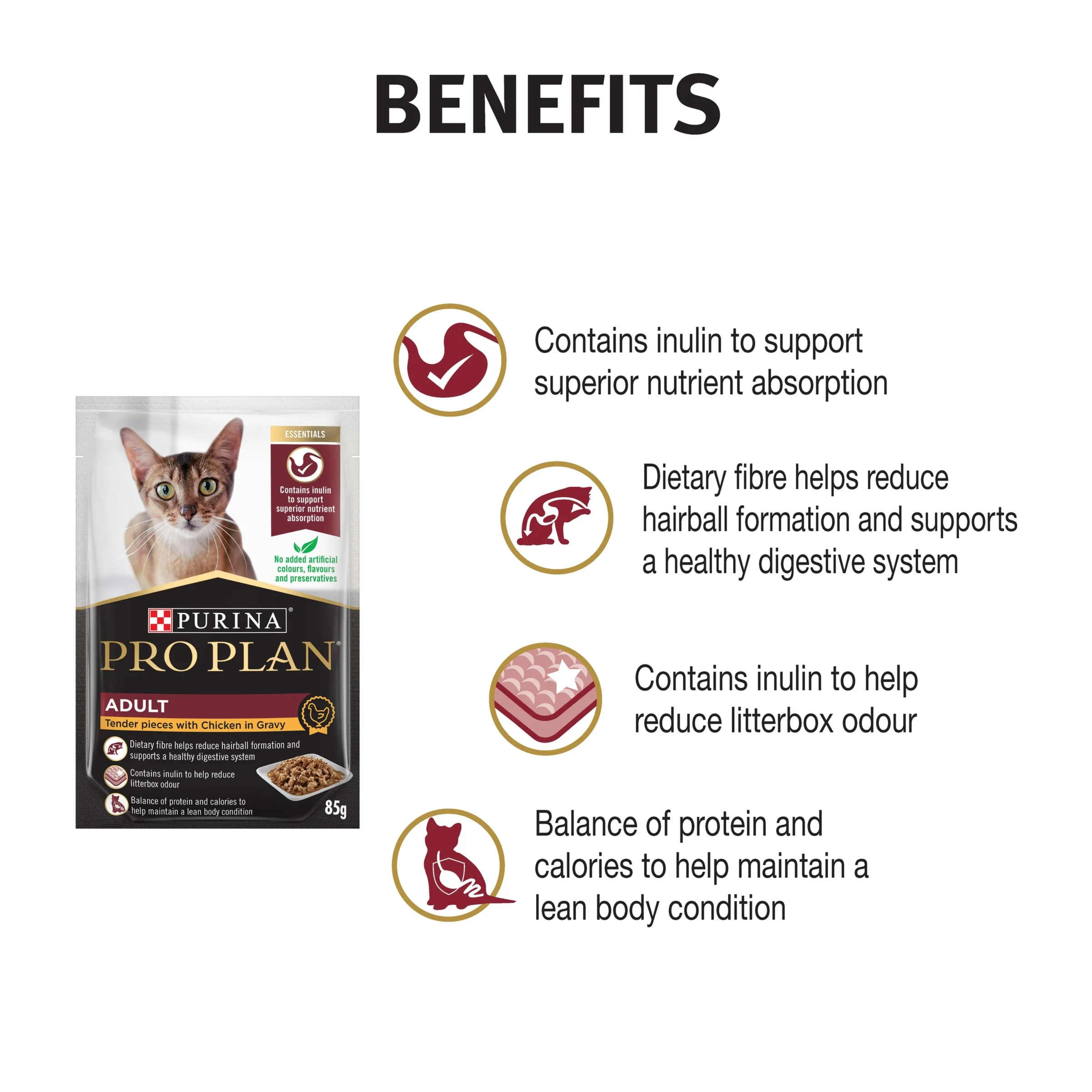 Pro Plan Cat Food Formulas Harness The Power Of Science To Provide Your Cat With Optimal Nutrition For A Life Of Health And Vitality. This Premium Quality Wet Cat Food Is Designed Specifically For Adult Cats With Sensitive Digestion. Pro Plan Sensitive Adult Wet Cat Food Is Made From Highly Digestible Ingredients And also Contains Inulin A Prebiotic Fibre Which Is Proven To Enhance Digestive Health And Also Supports Superior Nutrient Absorption.