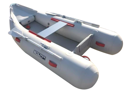 All SCOUT 245 boats are made of the latest generation of PVC 1,100 denier (0.9 mm) PVC fabric with polyester support which offers excellent abrasion and tear resistance. Each seam is hand glued with four layers of bonded fabric for maximum strength and durability. Two sheets are overlapped and glued before two re-enforcement layers are attached either side. Glued seams offer better durability to welded seams when the PVC product is designed to be inflated and deflated on a regular basis. Our choice of fabric and seam design means SCOUT 245 boats are built tough and designed to last.