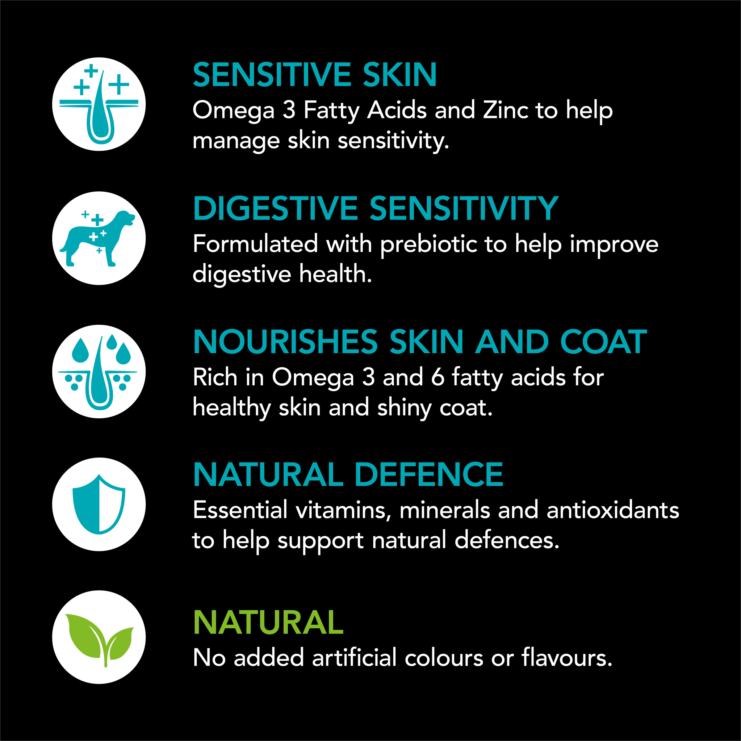 - Sensitive Skin – Omega 3 Fatty Acids and Zinc to help manage skin sensitivity