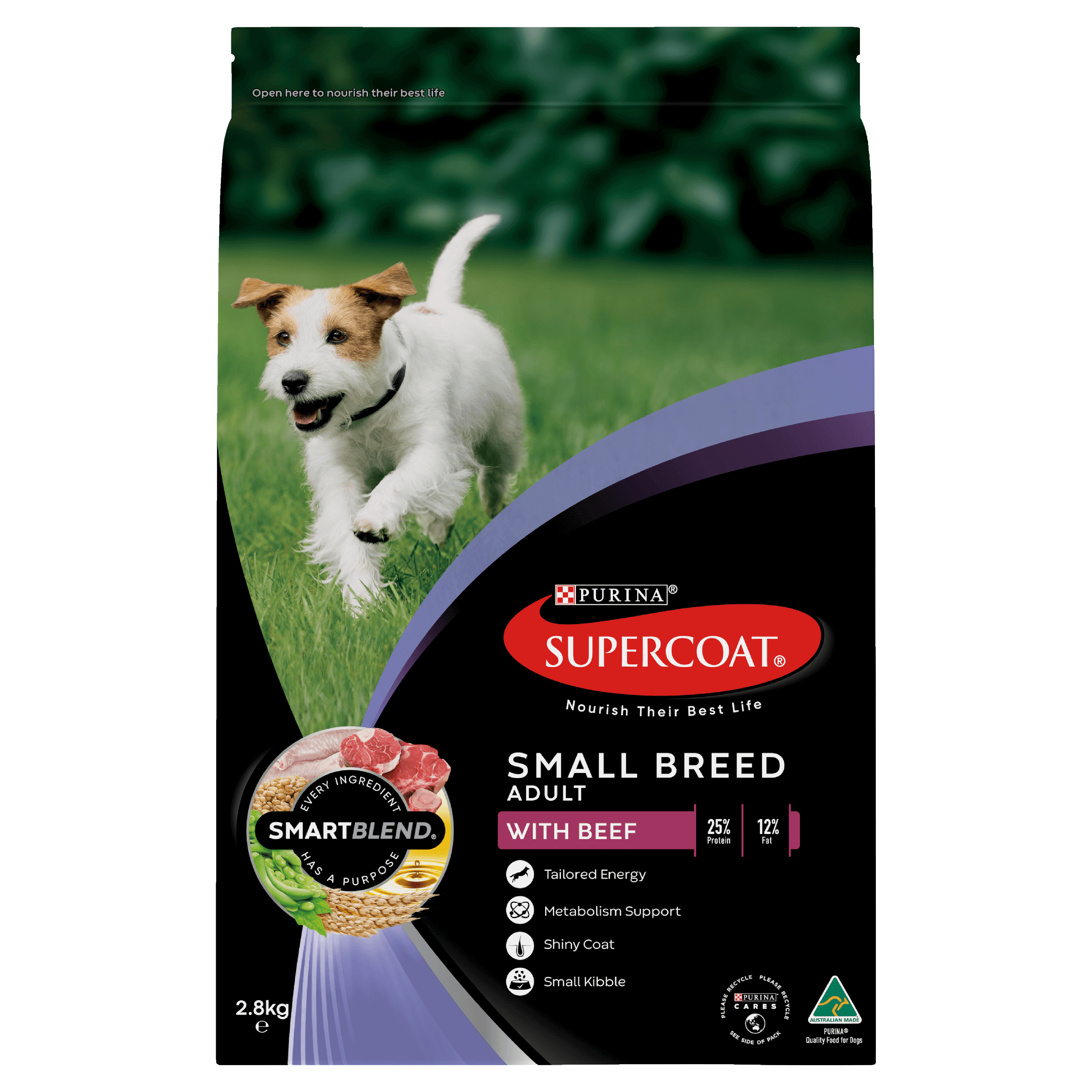 SUPERCOAT® SMARTBLEND® Adult Small Breed Dog Food Beef not only provides all the essential nutrients your dog needs, but it also tantalizes their taste buds. We understand that small breed dogs can be discerning eaters, which is why we have meticulously crafted a recipe that is sure to satisfy even the most selective palate.
