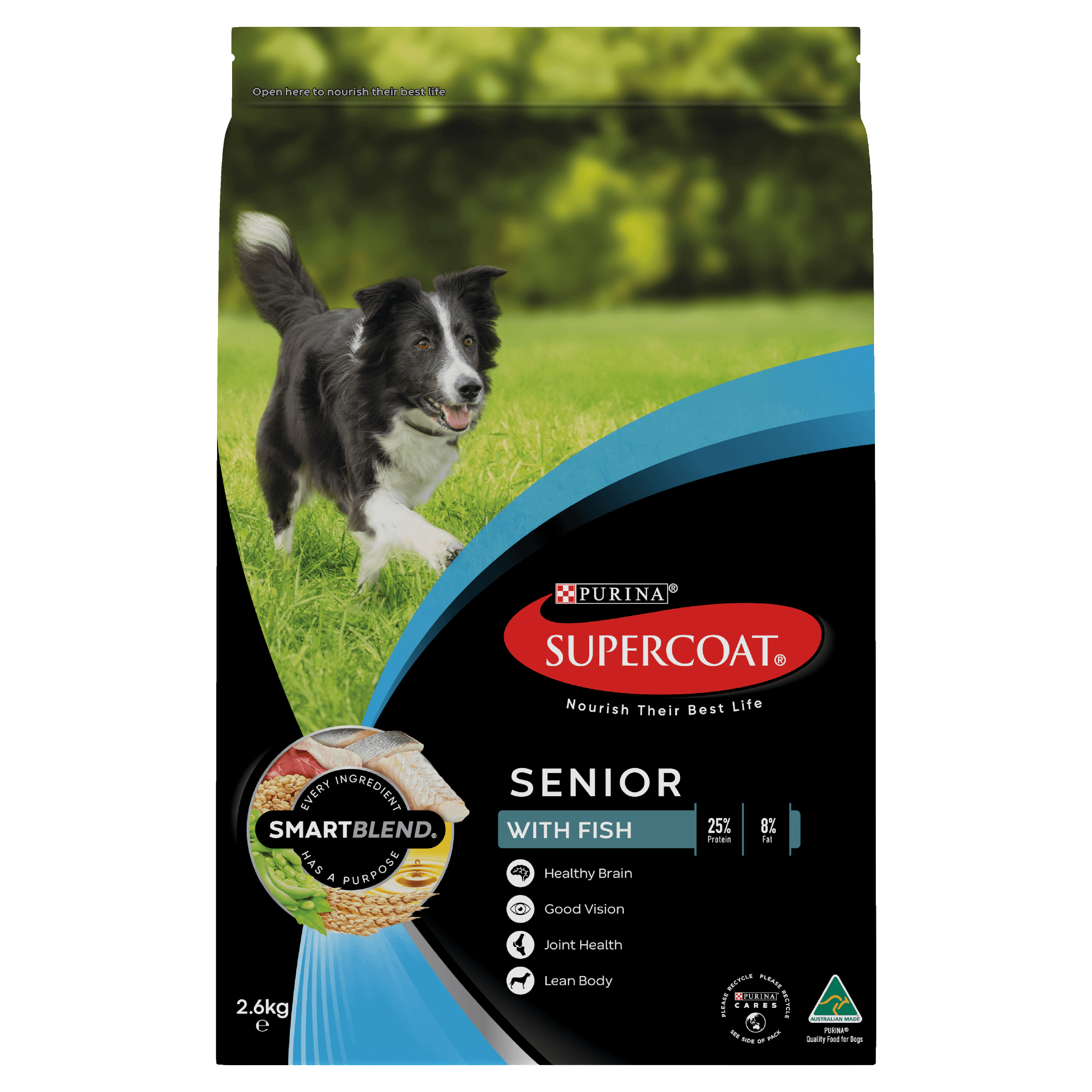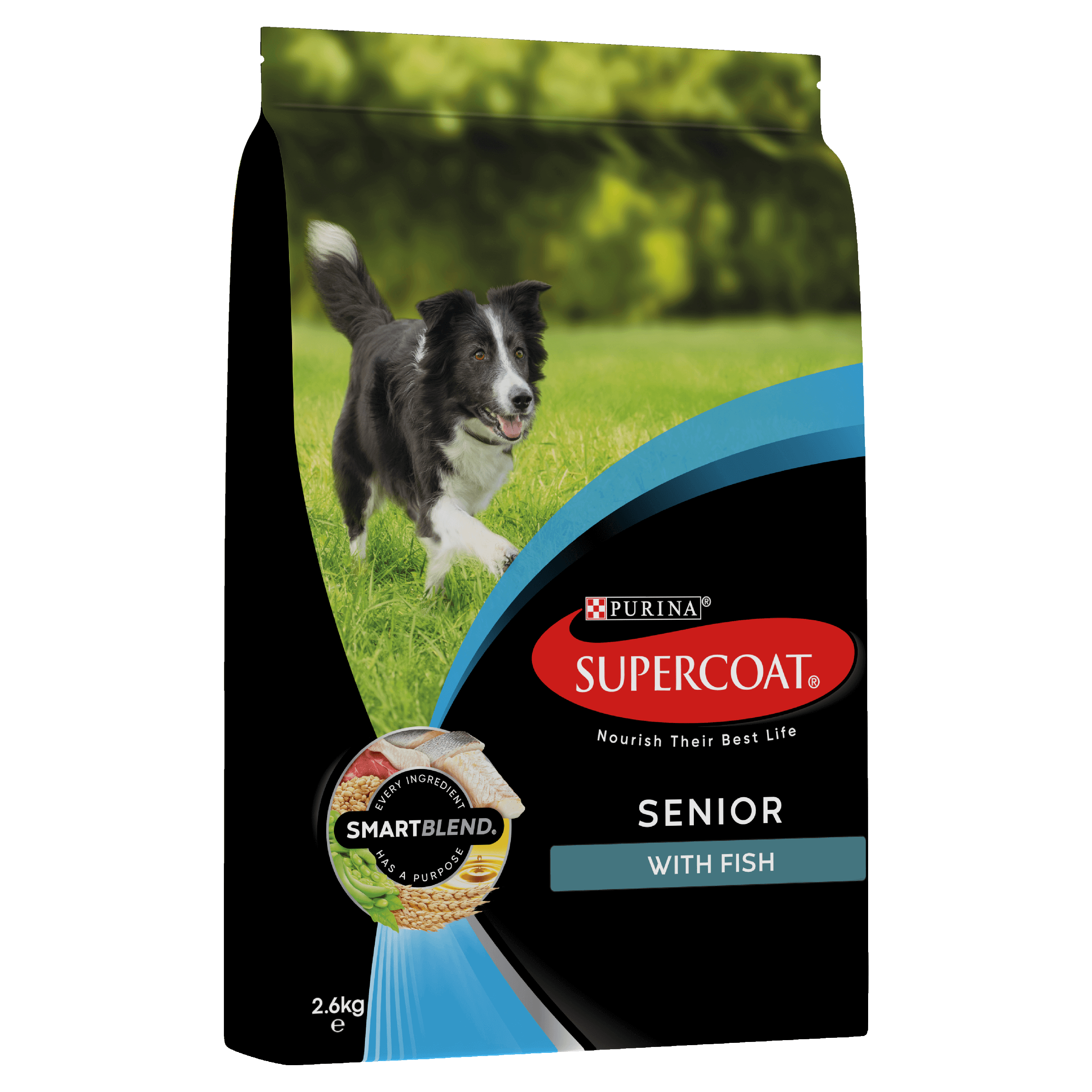 Introducing SUPERCOAT® SMARTBLEND® Senior Dog Food With Fish, the perfect choice to nourish your senior companion. We understand that as dogs age, their nutritional requirements change. That’s why the experts at SUPERCOAT® developed SMARTBLEND®, a precise combination of high-quality natural ingredients to create a recipe that will provide your senior dog with the essential nutrients they need to thrive in their golden years. Real fish takes centre stage as the primary ingredient, delivering a protein-packed foundation to support your dog’s aging muscles and overall vitality.